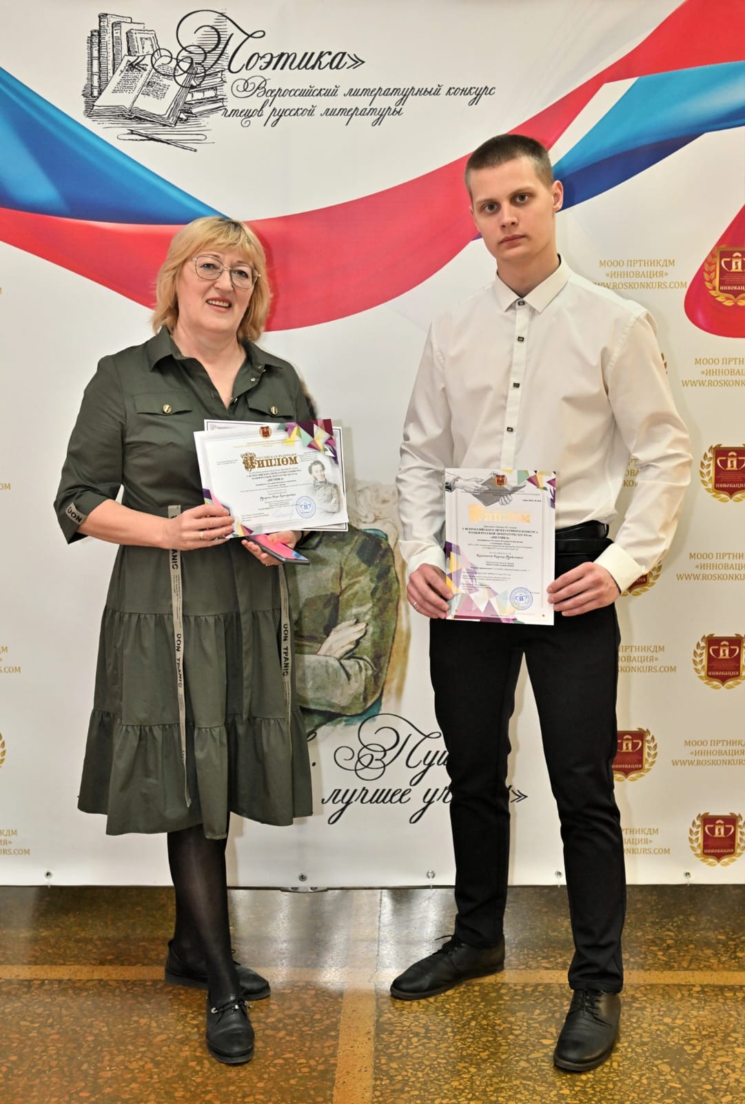 Калиничев Кирилл стал призёром 3 степени за прочтение стихотворения С.Есенина «Ну, целуй меня, целуй!» Среди участников были студенты музыкальных и театральных училищ, конкуренты сильные и достойные! Победители всех групп выступали в концертном зале. И руководители, и студенты с удовольствием слушали звёздочек этого конкурса. После концерта организованно нас доставили в Москву, откуда разлетелись все по разным уголкам нашей необъятной Родины. Мы благодарны Организационному комитету этого конкурса за чёткую организацию быта и проведение конкурса.