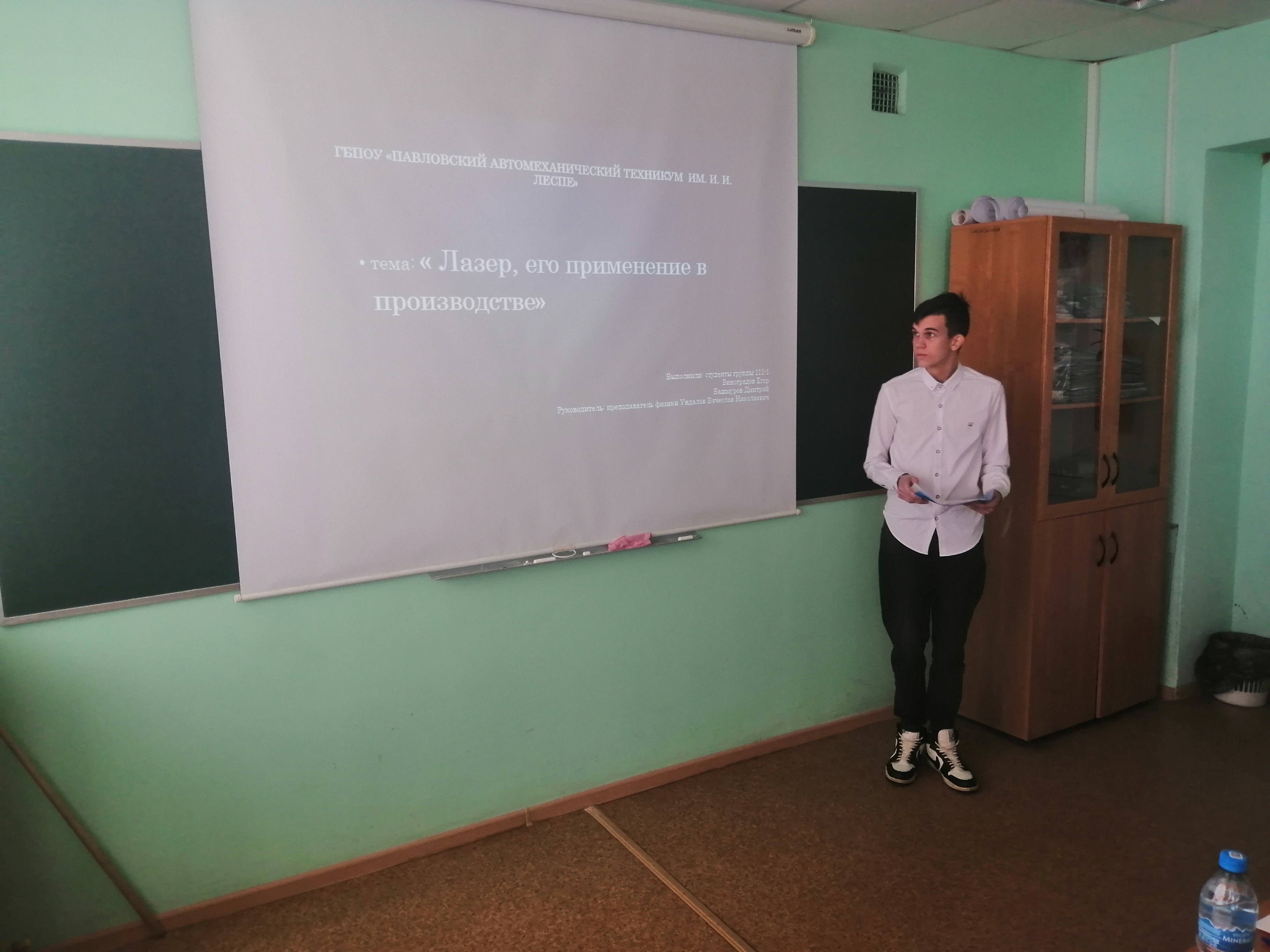 * Виноградов Егор, Башмуров Дмитрий «Лазер, его применение в производстве», ГБПОУ ПАМТ им. И.И.Лепсе, руководитель Ундалов ВН