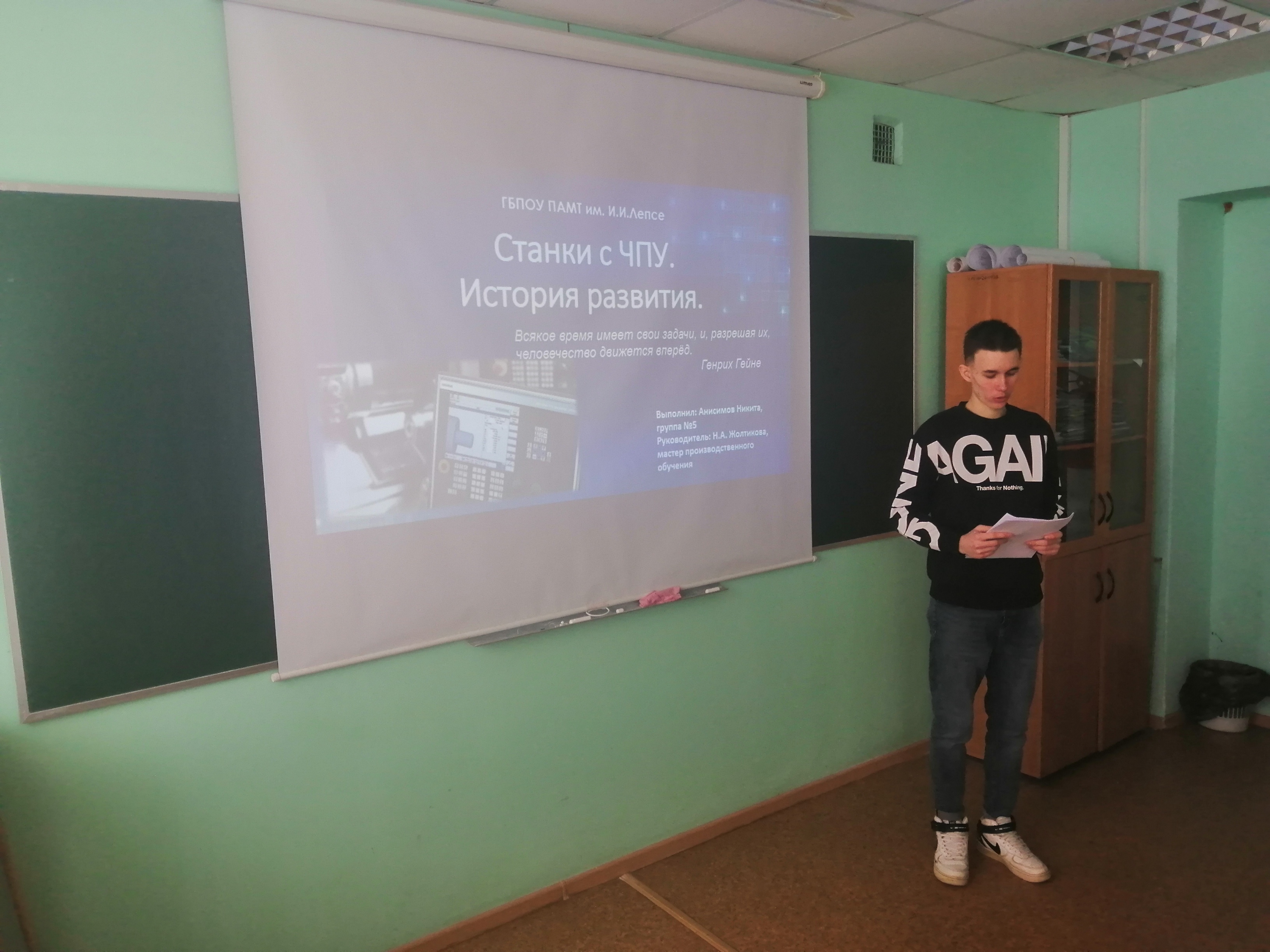 3 место – Анисимов Никита «Станки с ЧПУ. История развития» ГБПОУ ПАМТ им. И.И. Лепсе, руководитель Жолтикова Н.А.