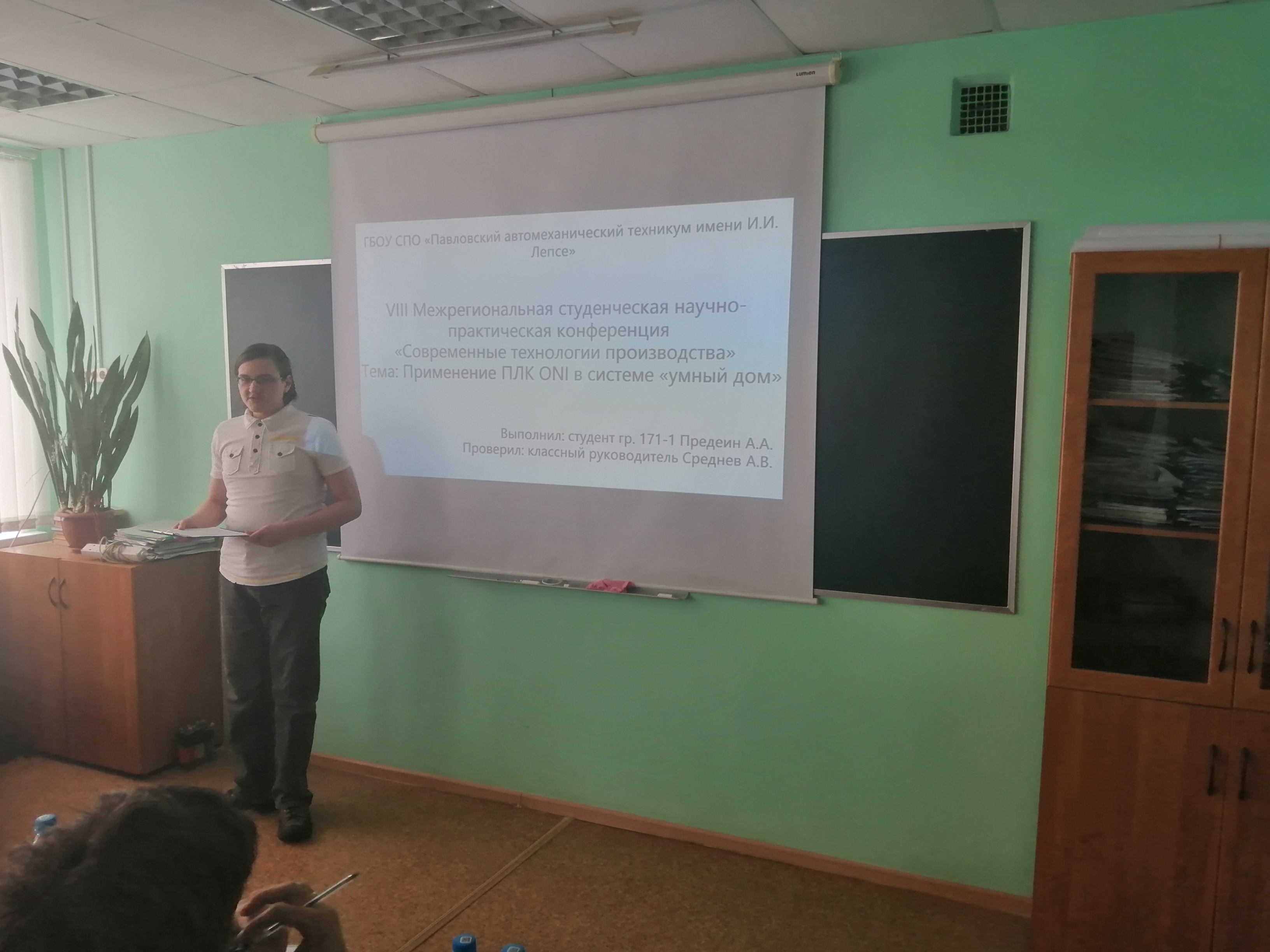 2 место – Предеин Артем «Применение ПЛК ONI в системе «Умный дом», ГБПОУ ПАМТ им.И.И.Лепсе, руководитель Среднев А.В.