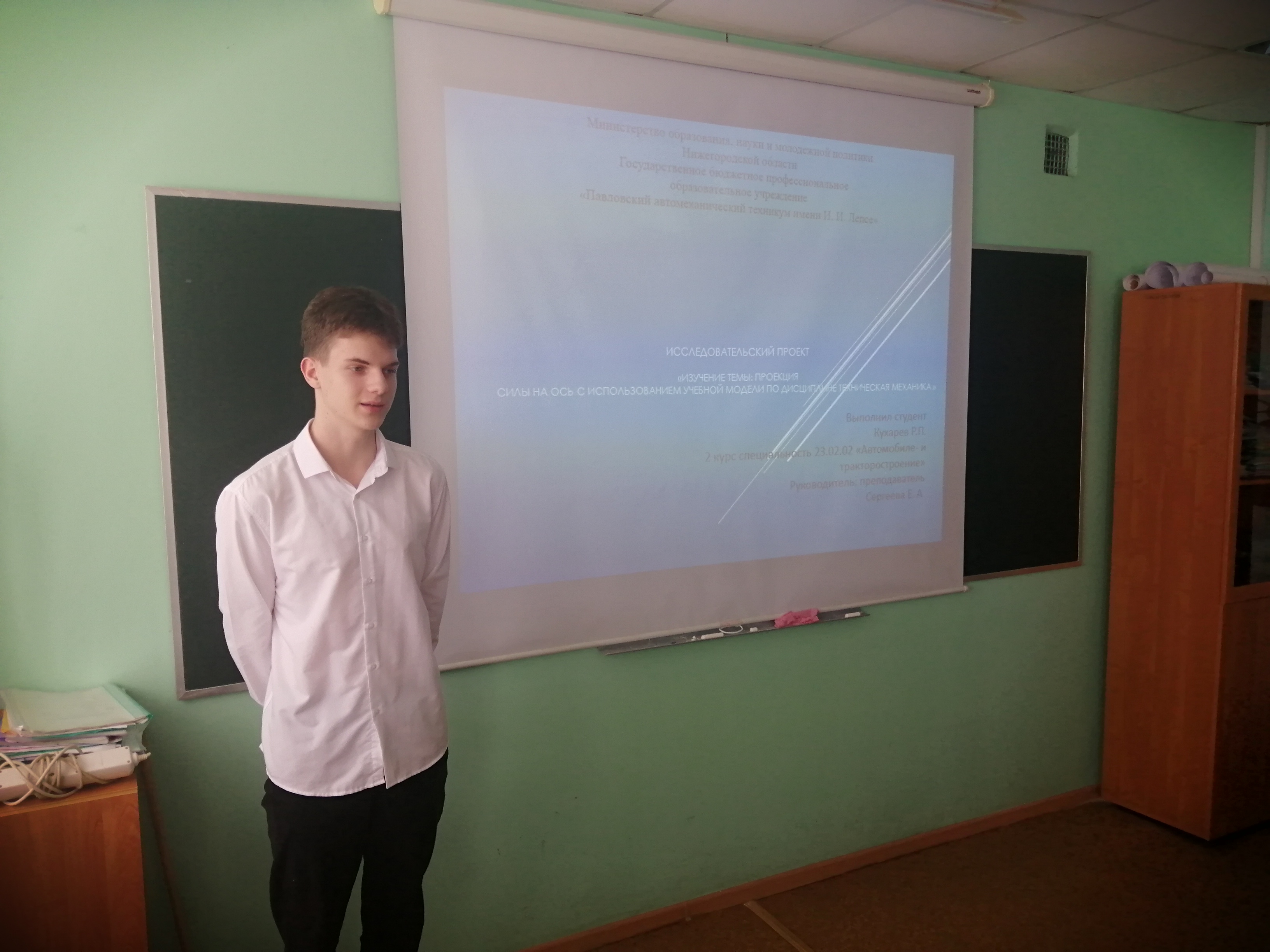 * Кухарев Роман «Изучение темы: «Проекция силы на ось c использованием учебной модели по дисциплине Техническая механика», ГБПОУ ПАМТ им.И.И.Лепсе, руководитель Сергеева Е.А.